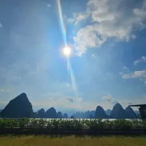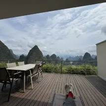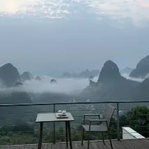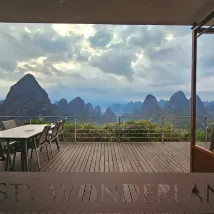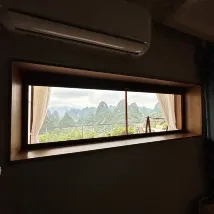 Des vues à couper le souffle qui vous donnent envie de rester plus longtemps ! Notre hôte, Xiao Hong (小红) a veillé à ce que nous soyons bien logés. Nous avons fait des réservations de prise en charge qui étaient gratuites, 3 excursions à l'extérieur du complexe, dont la visite de la rivière Li, le téléphérique jusqu'au pont de verre et le populaire spectacle Impression of Liu SanJie. Le jour du départ, un taxi pour environ 50 USD. Tout cela, Xiao Hong nous a aidés à le réserver, et le paiement pouvait lui être effectué via WeChat. Le dernier jour, nous avons passé notre temps à profiter du complexe et à prendre des photos, qui, honnêtement, ne rendent pas justice à l'emplacement. La région est incroyable et les vues sont impeccables. La prochaine fois que je serai à nouveau dans la région, c'est ici que je séjournerai.