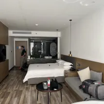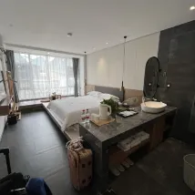 Cet hôtel a été le meilleur de notre voyage en Chine. La chambre est très grande et spacieuse. Le matelas est confortable et comprend deux oreillers par personne. La salle de bain et les toilettes sont séparées du lavabo où l'on se lave les mains, ce qui facilite grandement l'hygiène personnelle. L'hôtel est situé tout près de West Street (à 2 minutes), mais on n'entend rien. À noter : si vous arrivez en taxi ou en voiture, on ne vous déposera pas devant la porte ; il vous faudra marcher environ cinq minutes. La terrasse est très agréable et offre une vue magnifique.