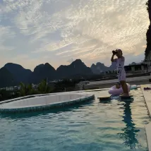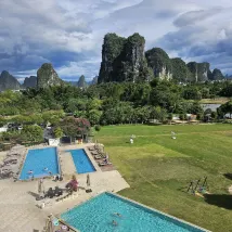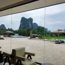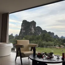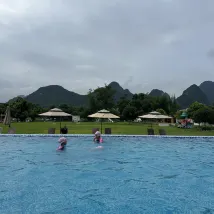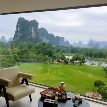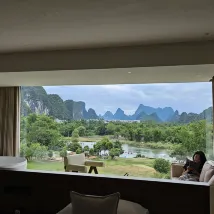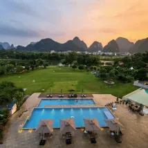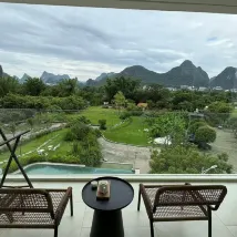 Lieu magique avec des vues magnifiques, services hôteliers de grande qualité avec des chambres spacieuses et des activités pour toutes la famille. Enfin la localisation est un peu excentrée du centre de Yangshuo... mais un didi de 15RMB vous y emmènera en 5-10 minutes. Bref très beau complexe hôtelier !