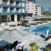 Environnement : L’ambiance est plutôt agréable, avec un balcon donnant sur la rivière Yulong et la grande pelouse à l’entrée. Chaque bâtiment dispose d’une piscine. Cependant, les taxis peuvent être un peu gênants aux heures de pointe. L’hôtel est situé assez loin de l’embarcadère et de la gare, et la circulation est très dense l’après-midi ; il faudra donc appeler un taxi à l’avance.