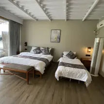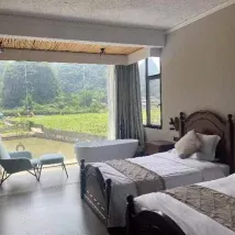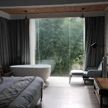 La vue depuis la chambre est vraiment magnifique et les chambres sont très confortablement meublées et vous invitent à vous attarder et à vous détendre. Cependant, la salle de bain est un peu épurée et la pièce n'est séparée que par des parois vitrées. Malheureusement, nous avions aussi un peu de moisissure sur les murs de la salle de bain. Les jets de douche sont vraiment bien ! Le service était très bon et tout a été essayé pour nous rendre heureux. La nuit était tout à fait suffisante pour une nuit. Cependant, il n'y a pas de petit-déjeuner occidental (mais cela ne nous a pas posé de problème)