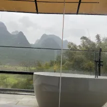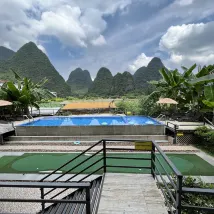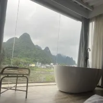 Tellement beau. La vue est spectaculaire et la chambre charmante. Personnel sympa et délicieuses nouilles Guilin pour le petit-déjeuner. Possibilité de louer des vélos électriques à côté. Je veux revenir quand il fait chaud