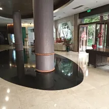 The hotel service was adequate. The facility was old and dated. The old furniture needs to be replaced. Our rooms were non-smoking, but the people directly across from our rooms were smoking. All the smell of the cigarettes came to our rooms. We didn't try the restaurant food. We were surprised that there were not many restaurants near the hotel.