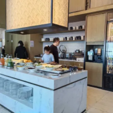 J'ai commencé à choisir un hôtel en mars et je l'ai changé trois fois. J'ai abandonné plusieurs fois parce que je ne pouvais pas acheter de billet, et j'ai finalement choisi le Xinguang Marriott. Dans l'ensemble, je me suis senti très bien pendant mon séjour pendant la période du 1er mai. J'ai choisi le lit double exécutif. La nourriture dans le salon était très bonne. J'ai lu des critiques selon lesquelles c'était trop simple, mais notre famille a trouvé que c'était bien. Je ne veux pas aller au deuxième étage pour dîner avec nos enfants. Le salon exécutif fait face à la mer, la variété est plutôt bonne.