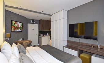 Les hébergements comprennent la climatisation et une télévision à écran plat. Vous bénéficierez d’une kitchenette entièrement équipée avec un coin repas, ainsi que d’une salle de bains privative comportant un bidet, des articles de toilette gratuits et un sèche-cheveux. Un réfrigérateur, un micro-ondes et un minibar sont également disponibles, de même qu’une bouilloire.