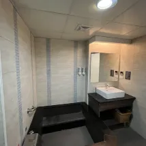Very near the bus station. Room is spacious with private bath. Able to use the public bath at night which is a bonus.
