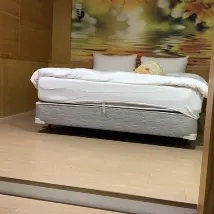Easy check in. Family room is located at a separate building. Big toilet as it includes the hot spring tub. The stairs up to the other bed is a little dangerous for young kids though, as they're a bit higher than usual step height; have to supervise closely. Space is quite tight for 3 luggages.