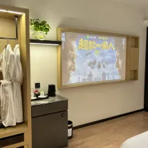 Le stationnement est pratique, il y a un parking et des places de parking devant l'hôtel sont gratuites. La salle a été transformée en salle de cinéma. Il est assez confortable de regarder des films, mais il est un peu difficile de régler le volume. Vous pouvez appeler la réception pour demander.