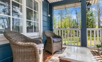 Summer kitchen with garden furniture, kettle grill and gas-heated grill pan. Separate lakeside sauna (dressing room and sauna room with wood burning sauna stove), hydro massage bath in front of the sauna building, Note hydro massage bath for the period 1.4.-31.10, note the hydro massage bath is not available during the winter months.