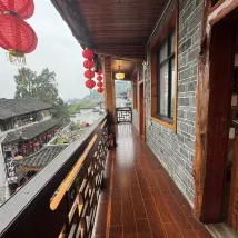 Pendant les vacances du 1er mai, j'ai emmené mes parents en voyage et j'ai passé une nuit à l'auberge. L'auberge est juste à côté de l'entrée du site pittoresque. Depuis le balcon, vous pouvez voir l'entrée du site pittoresque. L'emplacement est très avantageux.