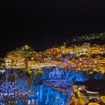 La vue depuis l’établissement est absolument époustouflante sur la ville et la cascade, surtout le soir lorsque tout est illuminé.