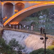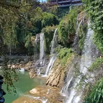Magnifique vu sur la cascade d’eau et le pont.