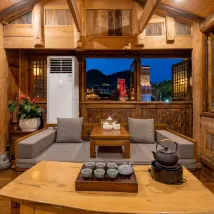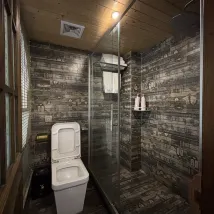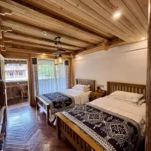 La chambre que j'occupais était tout aussi incroyable. Sa structure en bois lui conférait une atmosphère chaleureuse et élégante. La vue nocturne depuis la fenêtre était à couper le souffle, et prendre le thé en admirant le paysage, c'était d'un pur bonheur 🍵. L'établissement propose une grande variété de chambres – simples, doubles, ou suites – pour satisfaire tous les besoins. Les tarifs sont clairement indiqués sur des panneaux en bois, ce qui est très transparent.