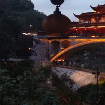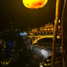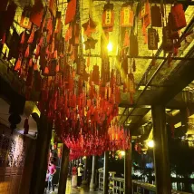 Dès mon arrivée à 'Baihe Wharf' pour ce voyage, j'ai été totalement conquis(e) ! L'architecture à l'ancienne est pleine de charme, et les lanternes rouges et les lumières en forme de citrouille jaune suspendues créent une ambiance absolument magique 🎑.