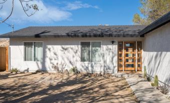 A residential neighborhood that is right across the street from a plaza with multiple food options, Walmart, and more! Super convenient. Easy 10-15 minute drive to Joshua Tree National Park.
