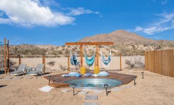 Welcome to Dusty Dunes By the property manager, the perfect hybrid between feeling secluded and being close to everything you need in town. The home is fully equipped with three bedrooms, a high-end design, and a fully immersive game room with a star skylight. Step outside to the patio with a shaded dining table area. Enjoy the serenity with the beautiful view of the closeby mountains. Take a dip in the hot tub, relax on the furniture deck, play horseshoes, or cool down in the pool.