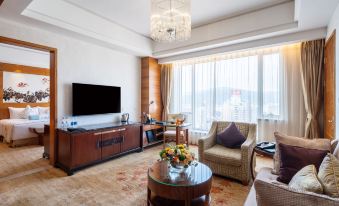 The New Joyful Hotel (Xin Jufengyuan Dajiudian) is situated in Liushi's bustling central business district and about 10 km (6 mi) from Leqing Railway Station.The on-site Chinese restaurant includes 73 well-decorated private dining rooms, a large banquet hall and a function hall seating up to 2,000. Guests will also find Japanese dishes on the menu here. For meetings or social events, there is a banquet hall and variously-sized conference rooms at guests' disposal. During leisure time, guests can socialize at the café, relax in the beauty salon, take a refreshing dip in the indoor swimming pool or enjoy a spa or massage. Guests can also play a game of billiards or ping-pong.