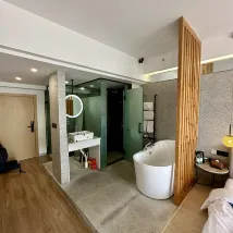 Incroyable ! Le personnel est adorable (m’a laissé mettre mon sac le matin de mon départ et laissé prendre une douche) la chambre est superbe, propre franchement trop bien !