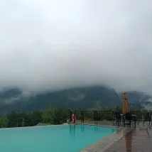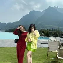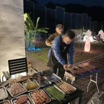 Le service est très bon, les femmes de ménage sont très sympathiques et l'expérience de séjour est bonne. Il y a un feu de joie le soir, ainsi que des chants en plein air, ou vous pouvez chanter seul. Même s'il pleut, la température de l'eau de la piscine reste adaptée à la baignade. L'eau de source de montagne est vraiment bonne et convient particulièrement aux réunions entre amis, en famille ou au team building. J'ai commandé un repas à l'hôtel et c'était bon. Je le recommande aux amis qui ne veulent pas faire de barbecue eux-mêmes.