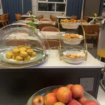 Breakfast for an international visitor was disappointing, yoghurt was available one day, but only one. The single coffee machine only produced coffee WITH milk and sugar! The staff were asked about this but seemed to have no clue.