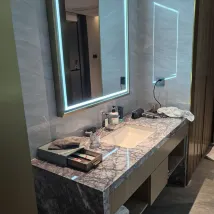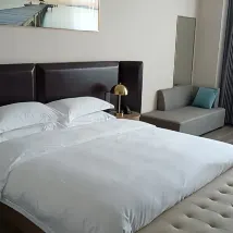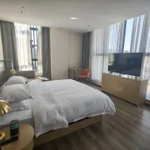房間空間很大,環境乾淨衞生,床墊和枕頭都睡的很舒服,智能化很高,能控制房間內的設施。