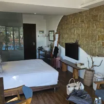 Этот отель потрясающий с потрясающим видом и где действительно фотографии соответствуют действительности мы очень рады что попали сюда здесь очень много интересных локаций для фотографий а также прекрасный вид из номера ванна была потрясающе очень хорошие качественные полотенца и  предметы гигиены в комнате очень светло свежо очень вкусно пахнет завтраки были очень вкусные мне очень понравились находясь в этом отеле не понимаешь что ты действительно в Китае тебе кажется что ты как будто в другой какой-то стране нам все очень понравилось я надеюсь что мы приедем сюда снова это потрясающий остров очень тихий и очень красивый