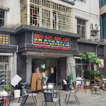 This place is at the entrance of the village. Not much nice food around but cheap. Skewer shop downstairs is expensive for the area. Not very clean inside but has air conditioning which can use warm and cold air.