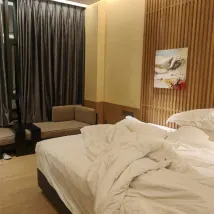 La chambre est très spacieuse, la salle de bain est séparée de l'eau et du sec et il y a un grand miroir. J'aime leur style de décoration, simple et élégant. Le service est également très bon Comme il y a de nombreux membres de la famille, je ne facture pas plus pour l'ajout de quelques bouteilles d'eau minérale. C'est le vrai service.