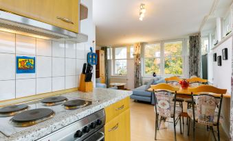Petite résidence "Dünenresidenz", de 2 étages. Dans la localité Zinnowitz, à 200 m de la mer, à 200 m de la plage. Infrastructures de la Maison: réduit pour bicyclettes, chauffage central. Garage en commun. Place de parking ou garage pour voiture de petite - moyenne dimension. Dimension: hauteur 190 cm. Supermarché 350 m, restaurant 20 m, boulangerie 100 m, café 100 m, arrêt de bus 100 m, gare ferroviaire 1.5 km, plage de sable 200 m, centre thermal "Bernsteintherme" 650 m. Marina 2.5 km, terrain de golf (18 trous) 25 km, ecole de surf 650 m, tennis 1 km, golf miniature.