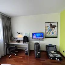 The first day when we arrived on the 13th of August , the guy at the front desk was very friendly and polite.The hotel is located near tram and train station and bus station so it is was very convenient to go anywhere. Tram is 4mins walk away ,10mins walk to supermarket and train station. And 15mins by tram to the Zurich airport .