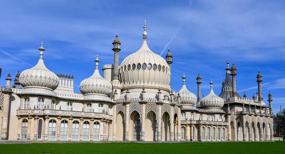 ▲ Le Royal Pavilion de Brighton : ce bâtiment emblématique de Brighton fut autrefois le palais royal de George IV. Son architecture exotique et ses intérieurs somptueux et fantastiques en font un joyau unique dans l'histoire de l'architecture britannique.