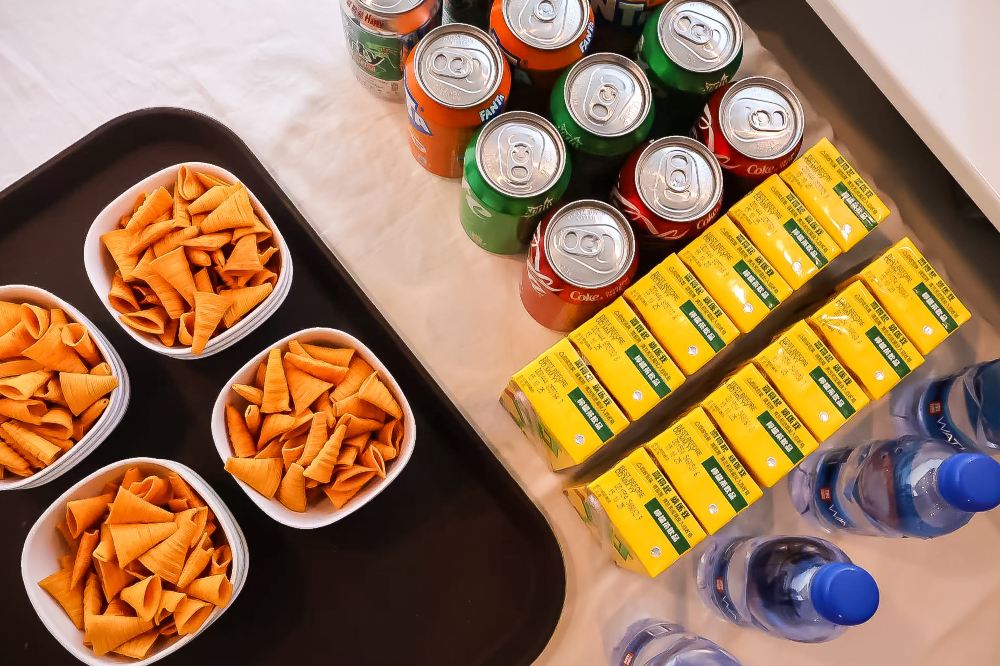 ▲ Boissons et snacks à volonté