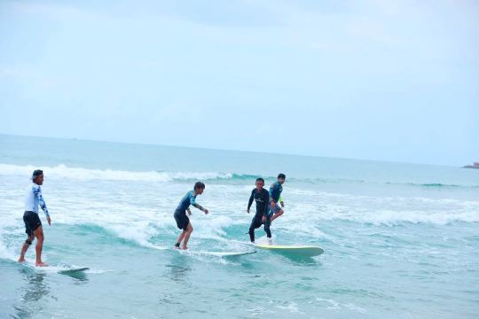 Comprend l'entraînement en Surf, la protection solaire, les vêtements de protection contre le froid, la protection contre la boue solaire et la photographie. Contenu principal du cours : comprendre le matériel de Surf, son histoire, son développement, la sécurité et les techniques de décollage, de position debout, de glisse et de chute à l'eau en toute sécurité ; renforcer les mouvements de décollage et de position debout, pratiquer la rame et la poussée de la planche assistée par l'entraîneur pour pagayer et attraper les vagues ; timing du décollage, timing de la rame, distinction des types de vagues, contre-courant et courant transversal, s'asseoir et tourner sur la planche, observer la zone de vagues, attraper les vagues de manière autonome et positions d'embarquement pour différents types de vagues ; pagayer de manière autonome pour attraper les vagues, différentes positions de départ et de position debout, accélération et décélération, sécurité en mer, étiquette du Surf et encadrement complet par des entraîneurs titulaires de brevets professionnels nationaux.