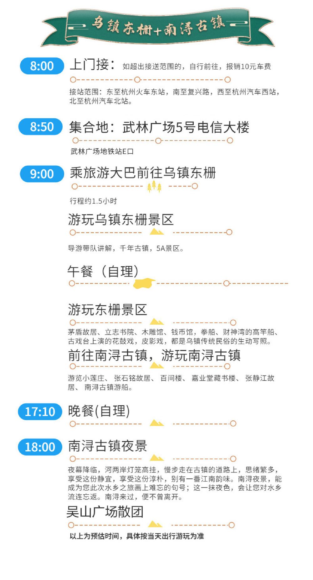 Départ de Hangzhou : Porte Est de Jiaxing Wuzhen + Ancienne ville de Nanxun + Vue nocturne de Nanxun + Prise en charge en ville + Guide en personne