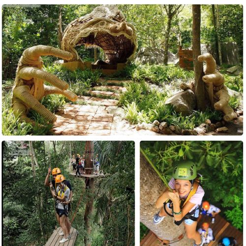 (8 tyroliennes, 350 mètres de long 1 section, 2 sections avec vue sur la mer de Padang + 2 stations de rappel + 3 stations de pont volant + 1 double tyrolienne + 1 cabane dans les arbres)