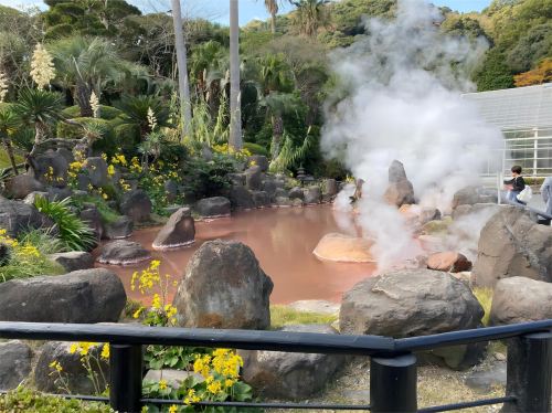 ▲ [Enfers de Beppu] Les Enfers de Beppu, également connus sous le nom des Sept Sources Infernales de Beppu, sont situés dans les régions de Kannawa et de Kamegawa à Beppu. Leur nom provient des sources thermales mystérieuses et capricieuses de la région. Vous pourrez y observer des vapeurs bouillonnantes s'échappant violemment du sol, des gaz en constante émission, des vapeurs riches en oxyde de fer et de la boue thermale en ébullition, ressentant ainsi la sensation palpitante que les voyageurs et les habitants locaux éprouvent depuis des générations. De plus, vous pourrez y admirer des animaux qui, autrement, ne choisiraient probablement pas ces sources thermales comme habitat.