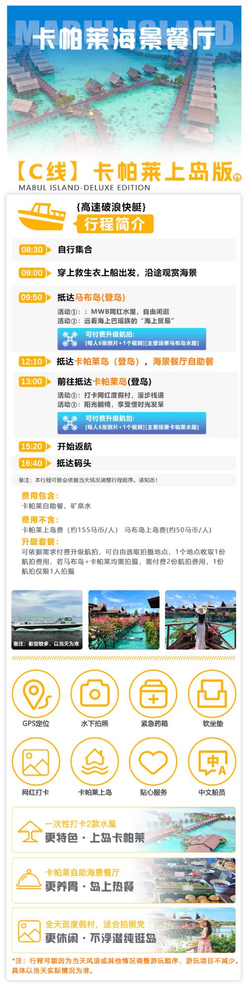 [Version île de Kapalai] Expérience unique sur l'île de Kapalai + restaurant avec vue sur mer + visite sans plongée + accès à 2 villages vacances avec maisons sur pilotis populaires en une journée