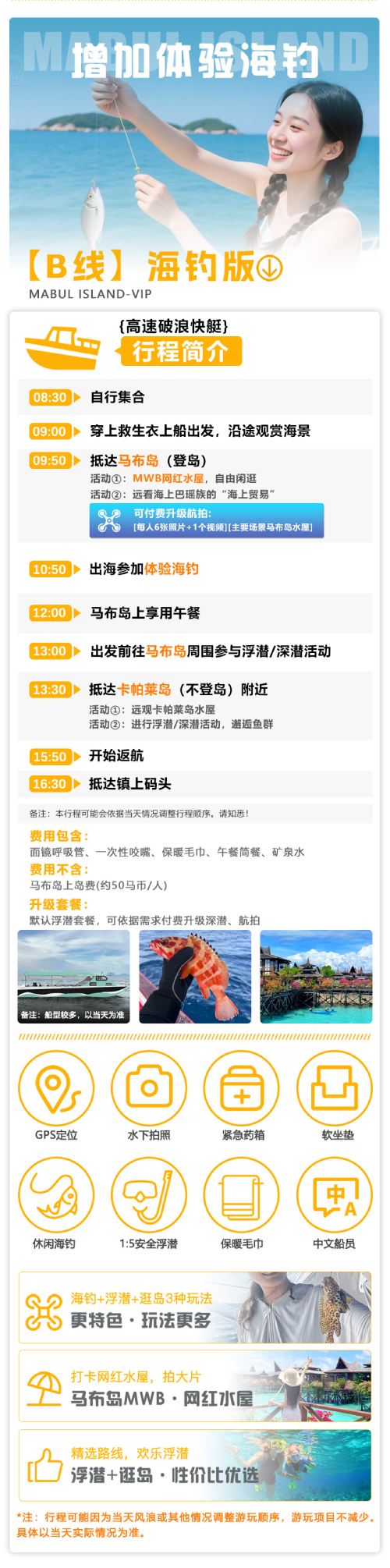 [Version pêche en mer] Expérience améliorée de pêche en mer + lancement de nouveaux produits + double expérience de snorkeling, voyage en chinois, choix préféré du public
