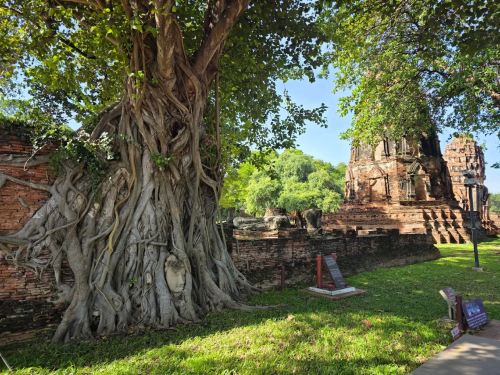 Le temple Wat Mahathat d'Ayutthaya est situé dans le parc historique d'Ayutthaya. C'est l'une des premières tours de style khmer d'Angkor en Thaïlande. Bien qu'endommagé par la guerre, des artefacts historiques précieux ont été découverts dans les sous-sols du temple, dont le célèbre "Bouddha dans l'arbre" - une tête de Bouddha sereine encerclée par les racines d'un figuier sacré. Cette merveille naturelle est considérée comme un spectacle unique en Thaïlande et constitue une attraction emblématique d'Ayutthaya.