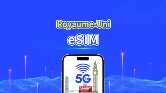 eSIM Royaume-Uni | 5G/4G | Forfait données quotidien/total | 1–30 jours | Facturation sur 24 heures | Code QR