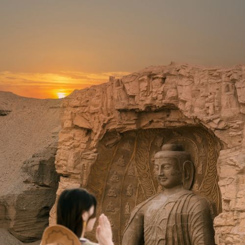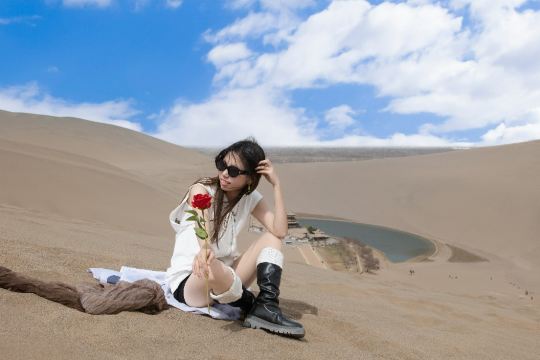 - Trip Moments dans le désert : Balade avec une caravane de chameaux et séance photo personnalisée avec tenue Hanfu au bord du lac en croissant ou costume de danseuse de Dunhuang.