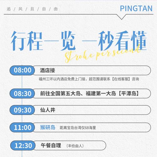 5. Pingtan est une destination qui comprend plusieurs sites touristiques, certains gratuits et d'autres payants. Ce circuit n'inclut pas les billets d'entrée pour l'île de Houyan et le puits des Immortels. Vous pouvez choisir de les visiter en option moyennant un supplément à votre charge.