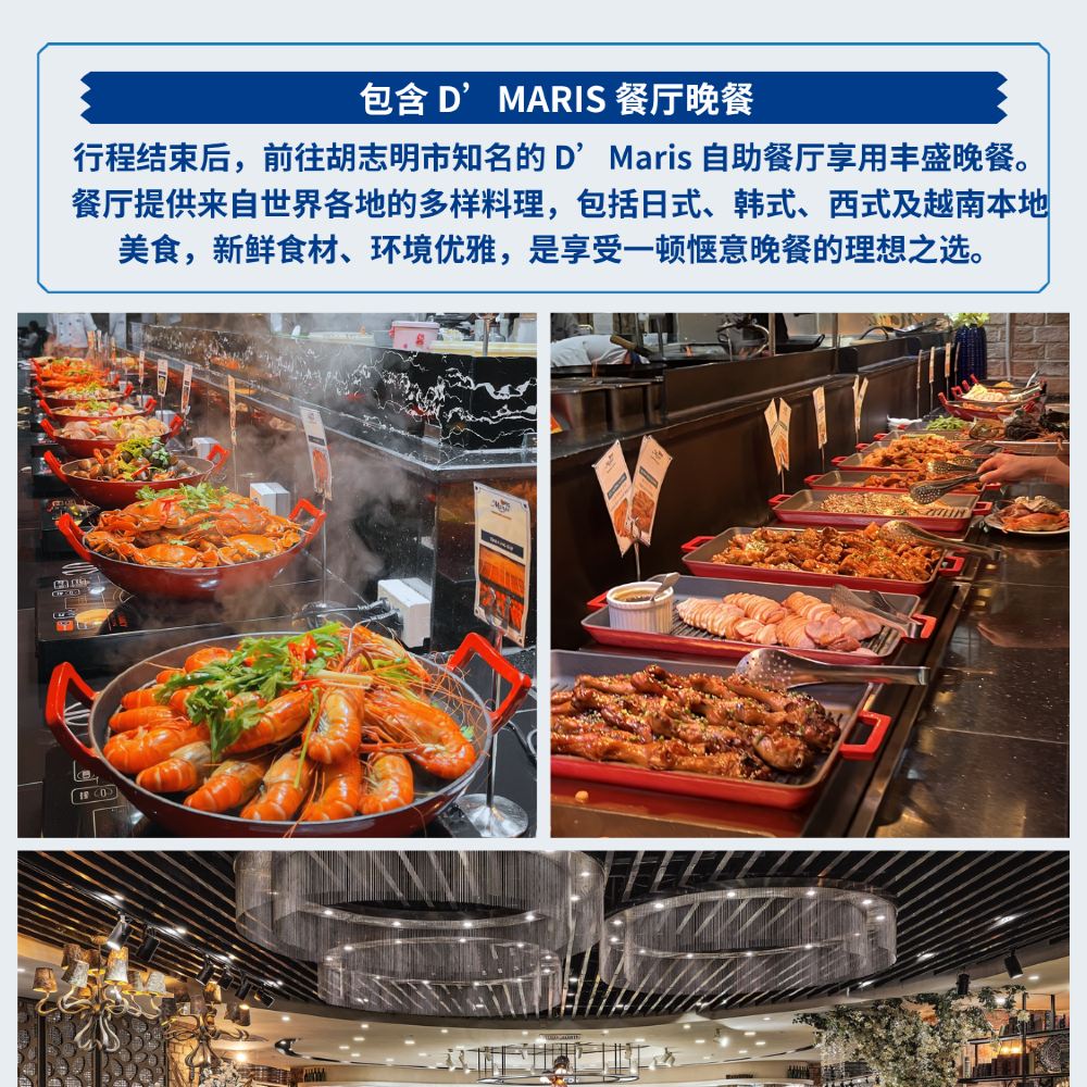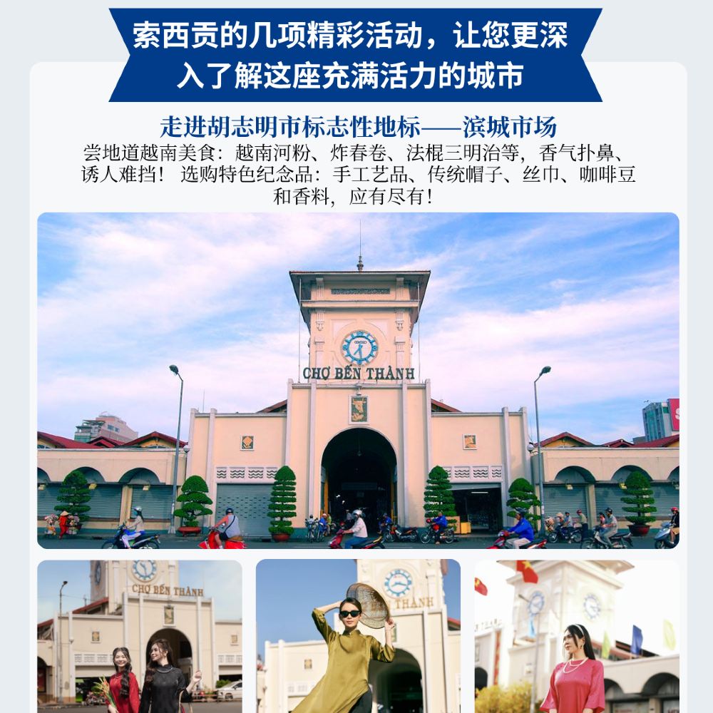 Voici le détail de l'excursion culturelle d'une journée à Hô-Chi-Minh-Ville, qui vous emmènera découvrir les sites emblématiques de la ville, pour une expérience alliant culture, gastronomie et paysages, le tout dans un itinéraire riche et détendu.