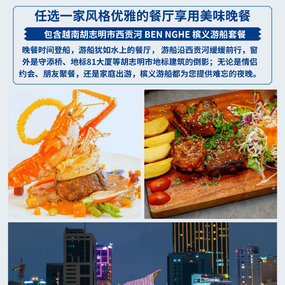L'après-midi, vous monterez sur la plateforme d'observation de la tour emblématique pour admirer le magnifique paysage urbain depuis les hauteurs. Profitez d'un délicieux goûter et d'un moment de tranquillité à Saïgon. En soirée, embarquez pour une croisière le long de la rivière Saïgon afin d'admirer la vue romantique de la ville la nuit, tout en savourant un buffet dîner chinois à bord, pour clôturer en beauté ce voyage culturel.