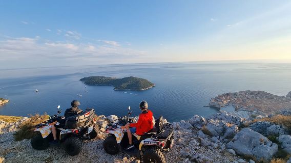 La meilleure façon de découvrir Dubrovnik et ses environs est de participer à un tour panoramique. Nous vous ferons découvrir le meilleur de Dubrovnik et les magnifiques sites qui entourent cette perle de l'Adriatique. L'excursion se déroule comme suit : nous prenons généralement en charge les passagers au port de Dubrovnik (croisières) ou à leur hôtel à l'heure convenue par l'un de nos véhicules, accompagnés d'un guide touristique professionnel agréé. Nous vous emmènerons au pont principal, dédié au premier président croate, Franjo Tuđman, d'où vous aurez une vue imprenable sur le port de Dubrovnik, la rivière Ombla, l'île de Daksa, les îles Élaphites et la région de Lapad et Babin kuk. Vous ferez une pause de 15 minutes pour prendre des photos. Après le pont, nous vous conduirons jusqu'aux petites cascades de la rivière Ombla, la plus courte du monde, où vous pourrez savourer une eau fraîche et cristalline et écouter le murmure des cascades. Vous disposerez également de temps libre. Après les cascades et la rivière la plus courte, nous vous conduisons derrière la montagne Srđ en passant par de petits villages jusqu'à ce que nous atteignions le sommet de la montagne où vous aurez une vue imprenable sur la vieille ville de Dubrovnik, l'île de Lokrum et les îles Élaphites à l'extrême nord.